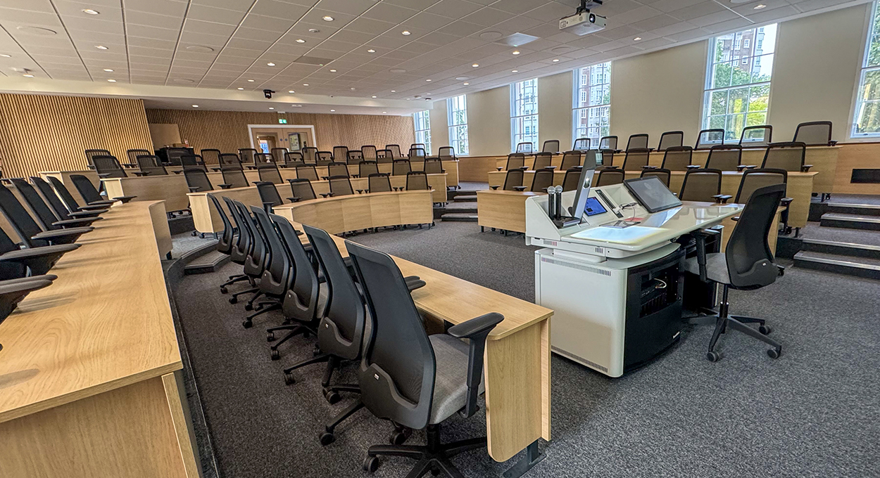 Overall, the room’s design was meticulously planned, with GVAV expertly coordinating the project with all stakeholders and all parties working collaboratively to ensure it retained the familiar layout and atmosphere of CLC1 while further enhancing and streamlining the space. Elsewhere in the building—particularly in the flat-floor and lecture theatre spaces—TeamMate’s highly customised teaching lecterns were also installed, reinforcing consistency in both design quality and user experience across the refurbishment.